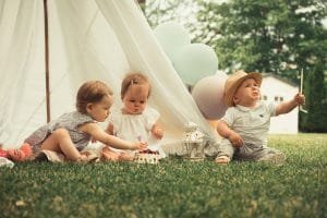 babies sitting in a yard